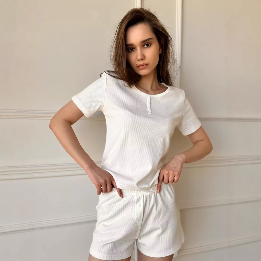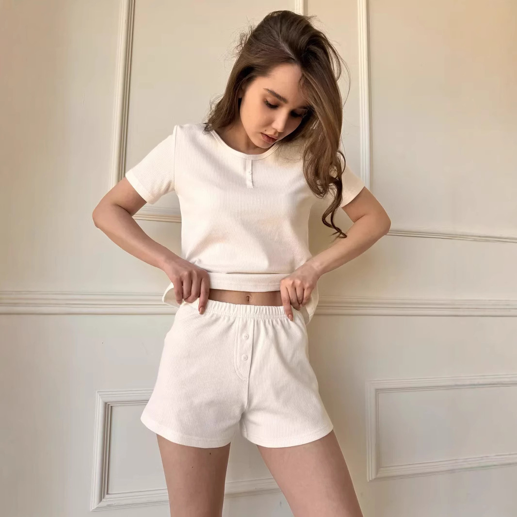 Hollow suspender pajamas set, sexy hot girl, pure lust style, slim two-piece home wear suit for women