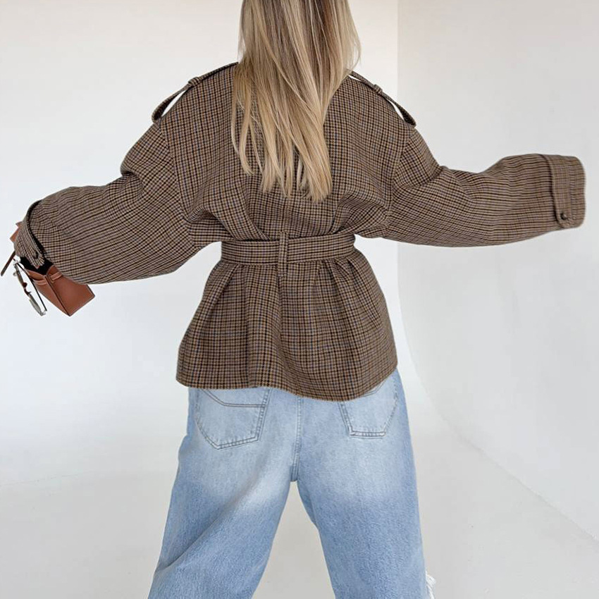 Old money style pattern coat, houndstooth retro jacket, top design, temperament and fashion