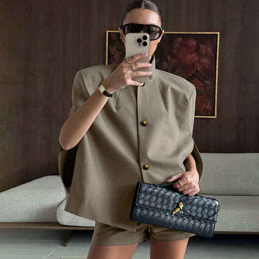 Khaki Sleeveless Cape Coat Women’s Audrey Audrey Style Top