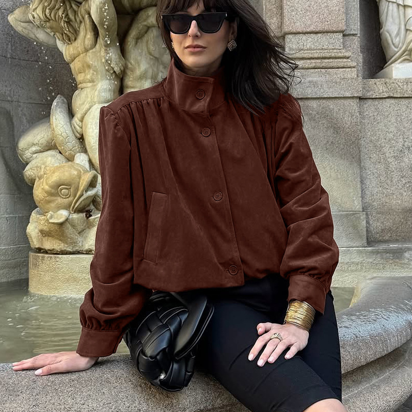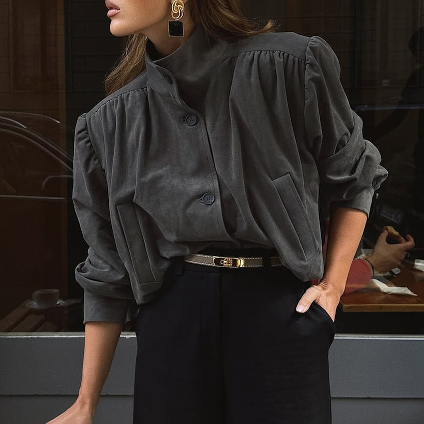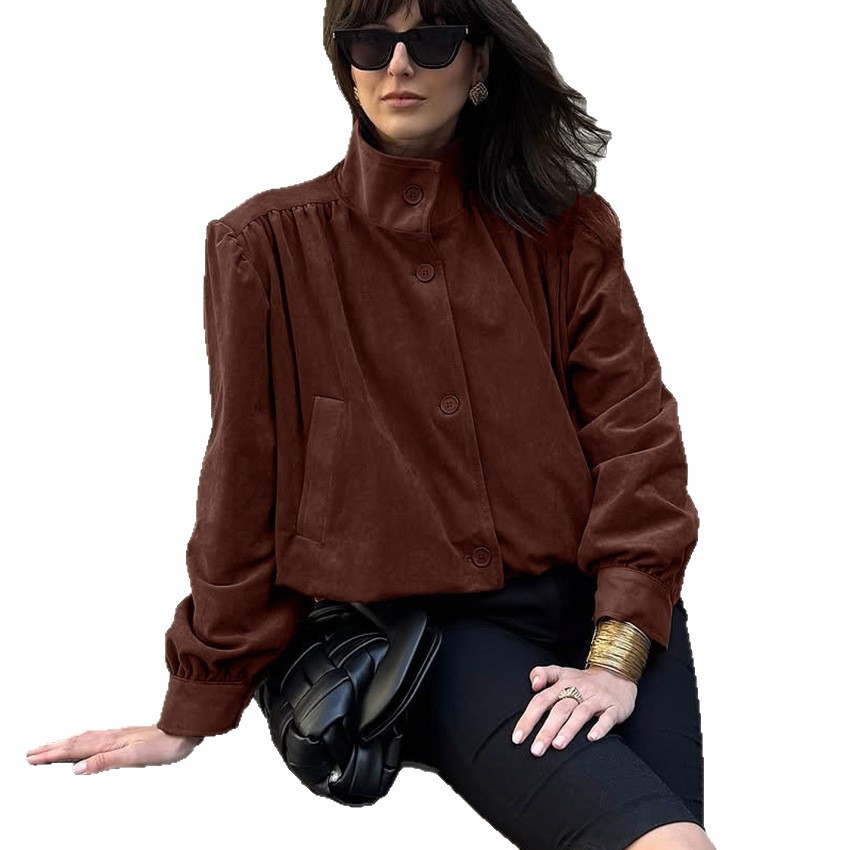 Clothes length: Ordinary (50c Sleeve length: long sleeves color: Gray, brown, weight: 330G, composition: 100% polyester, autumn, support size: S,,L style type: Temperament commuting placket: single breasted style type: Elegant temperament Whether: Yes Main downstream sales areas 1: Main downstream sales areas 2: