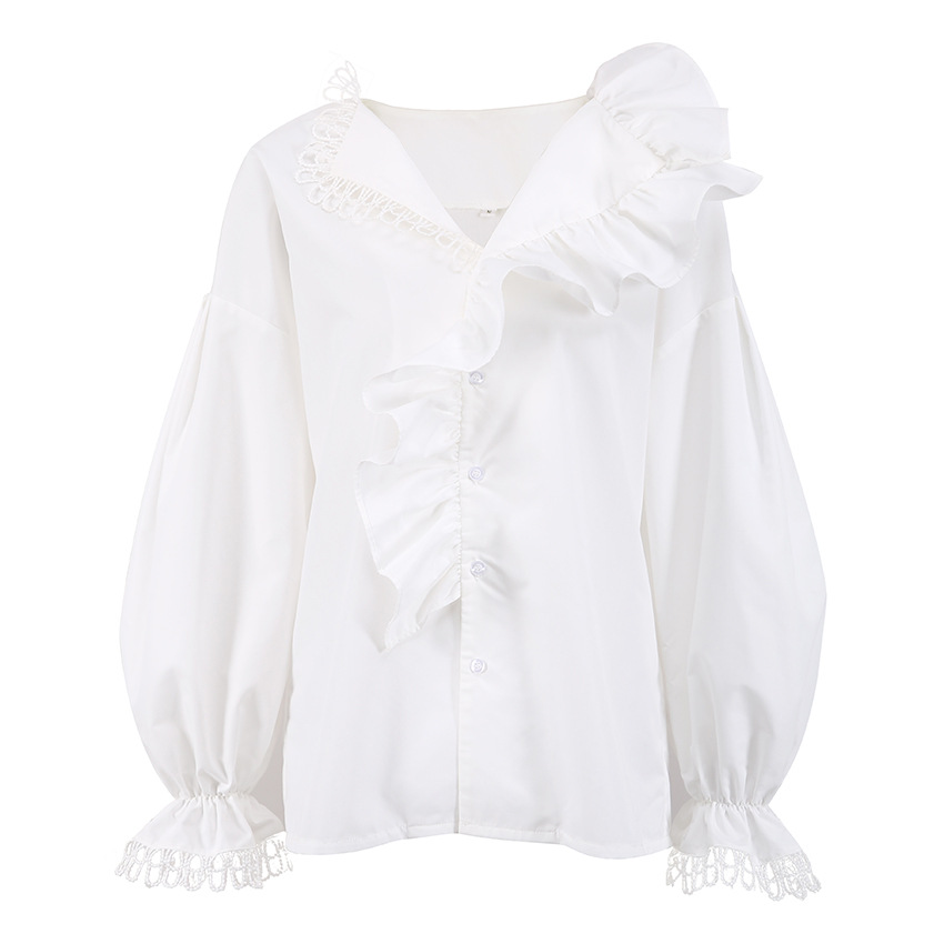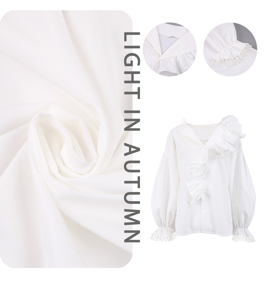 Clothes length: Ordinary (50c Collar type: V-neck Sleeve type: lantern sleeves Popular elements: Fungus side year season: Fall 2025 color: White, weight: 3g, composition: 80% polyester, 20% cotton, hair in seconds size: S,,L style type: Temperament commuting placket: single breasted style type: Elegant temperament Whether: Yes Get the bid: No collar bid Type: Hang tag: No tag Main fabric ingredient 2 content: 30% and below Main downstream sales areas 1: Main downstream sales areas 2: