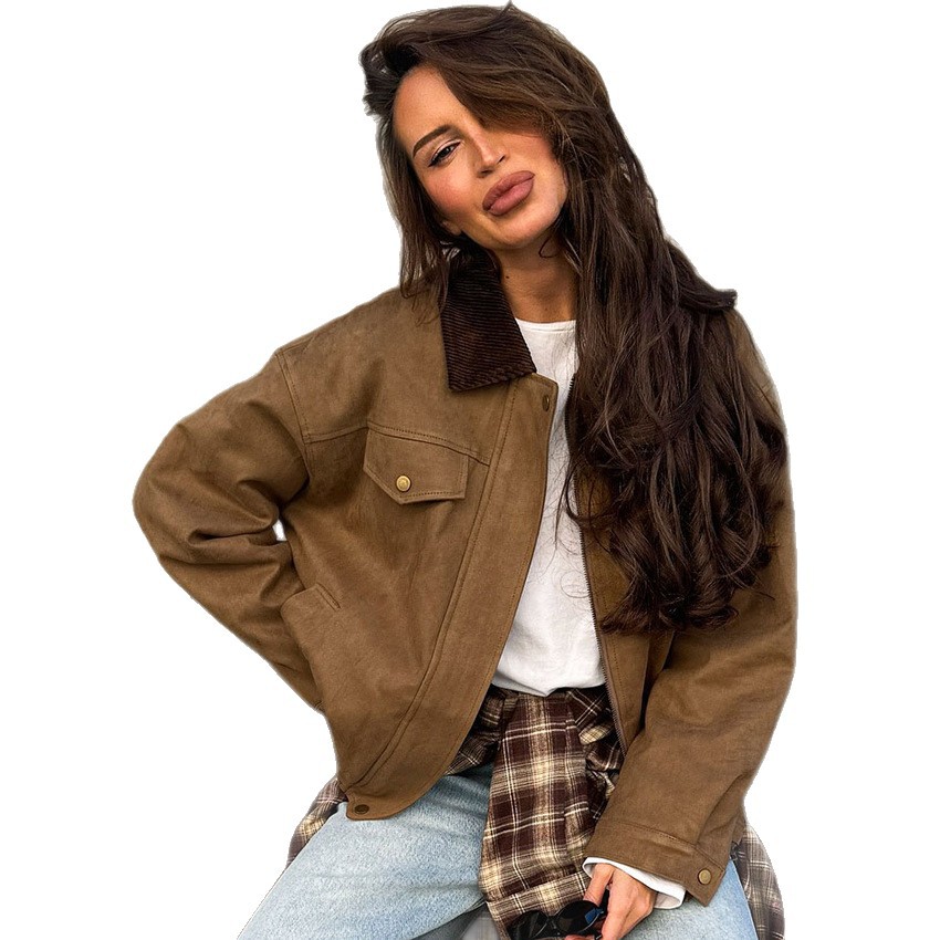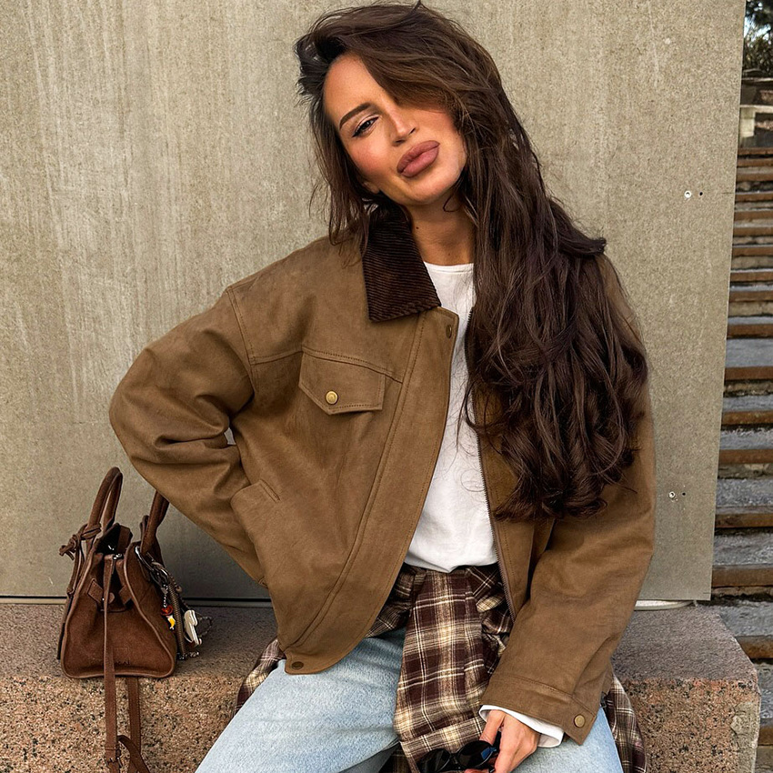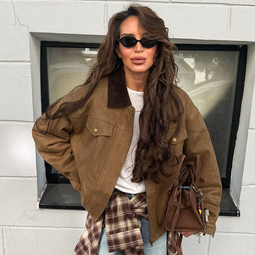 Clothes length: Mid-length (65c Sleeve length: long sleeves color: Brown, weight: 780G, composition: 96% polyester, 4% spandex, support size: S,,L style type: Temperament commuting placket: Zipper style type: Elegant temperament Whether: Yes Main downstream sales areas 1: Main downstream sales areas 2: