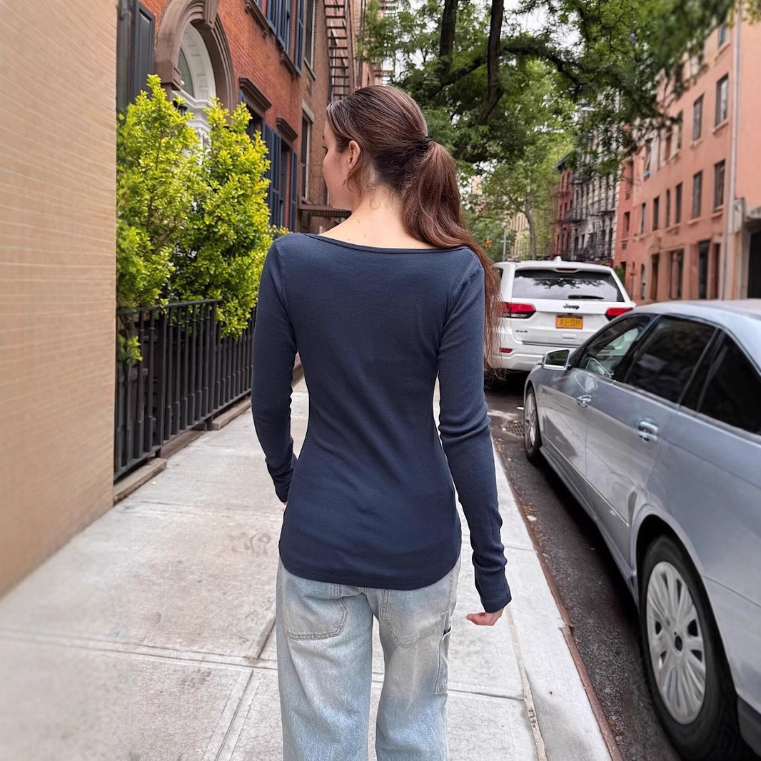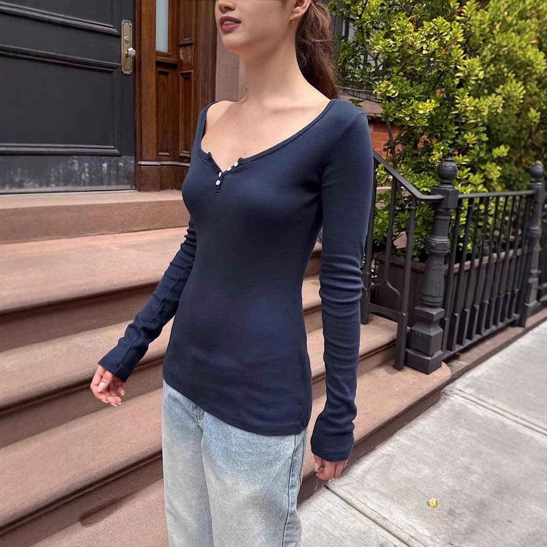 Be the first to review “Collared right shoulder long sleeve shirt for women solid color simple versatile pure lust hot girl style bottoming shirt top”