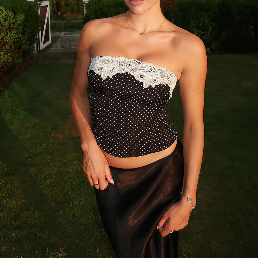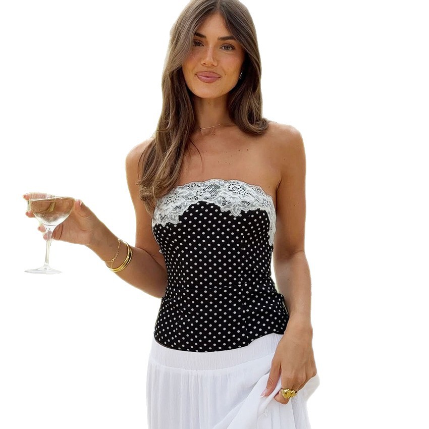Be the first to review “Contrasting color polka-dot vest lace top tube top with design and fashionable style”