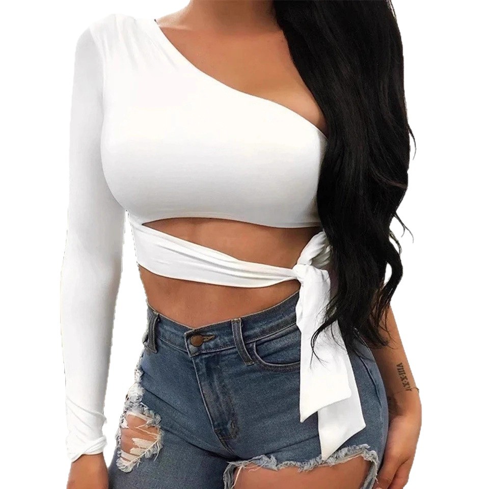 Fashionable and sexy off-shoulder high-waisted navel-baring off-shoulder chest-wrapped modal cotton comfortable long-sleeved top