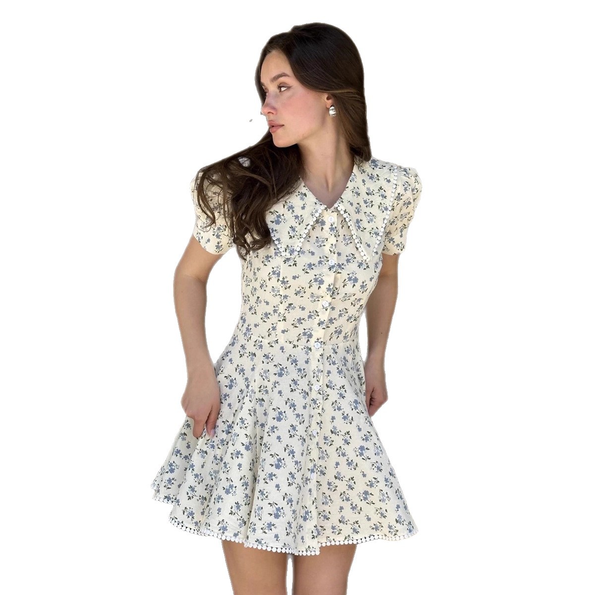 Be the first to review “Floral short-sleeved dress, slim and sweet doll collar single-row skirt”