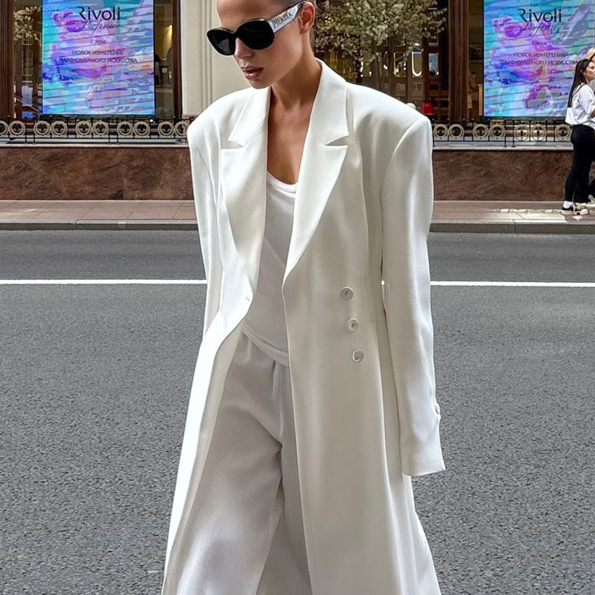 Clothes length: Extra length (100c Sleeve length: long sleeves Popular elements: buttons year season: Fall 2025 color: White, black, weight: 500G, composition: 100% polyester fiber, support size: S,,L style type: Temperament commuting Sleeve type: Regular sleeve placket: One button style type: Elegant temperament Whether: Yes Main downstream sales areas 1: Main downstream sales areas 2: