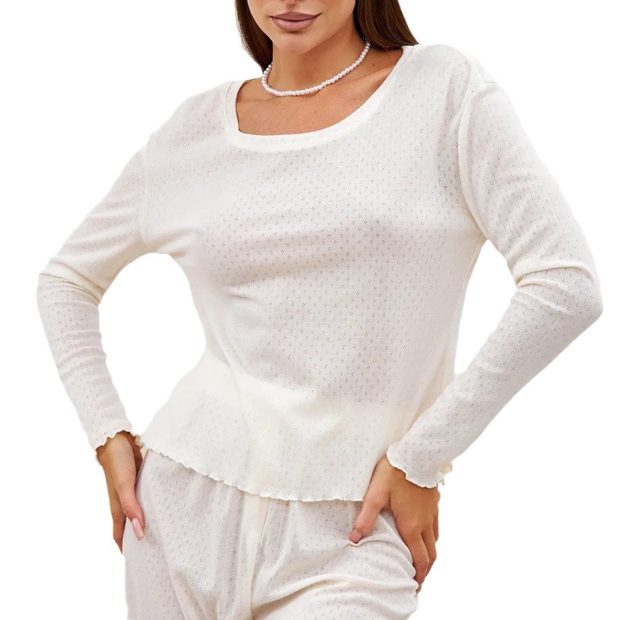 Jacquard hollow collar pajama set home wear casual loose long-sleeved trousers set