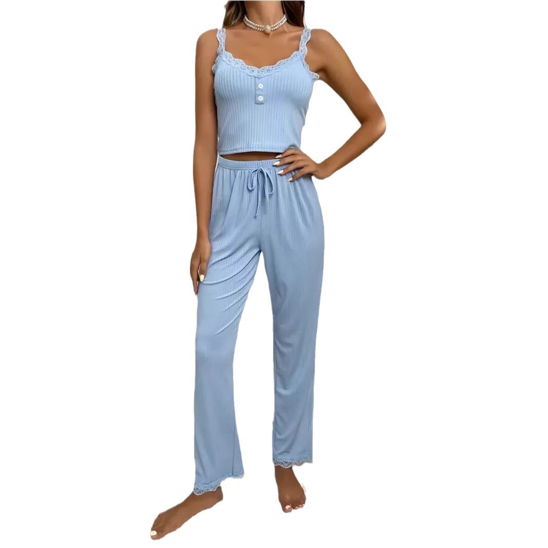 Lace Vest Pajama Suit Hot Girls Sexy Pants Casual Suspender Pajamas Home Clothes Women