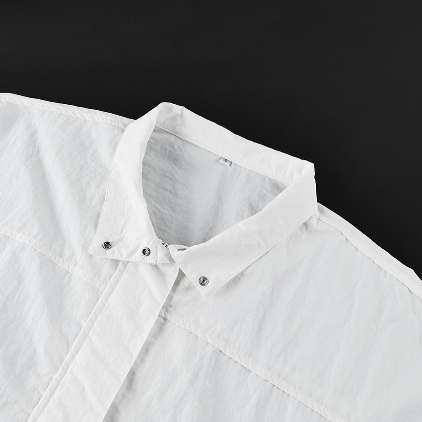 Be the first to review “Loose drawstring outdoor jacket design white black stand collar windbreaker”