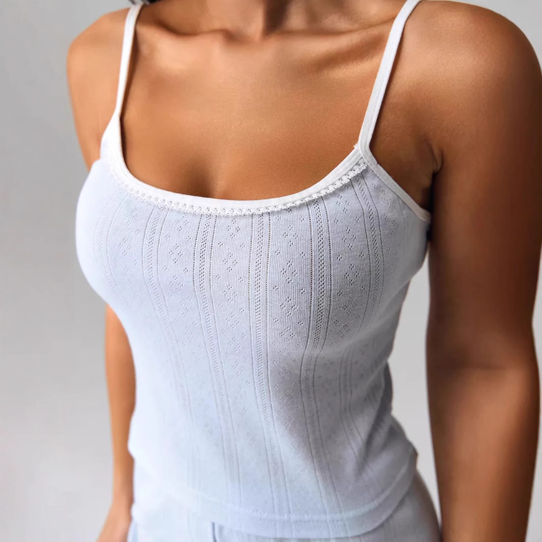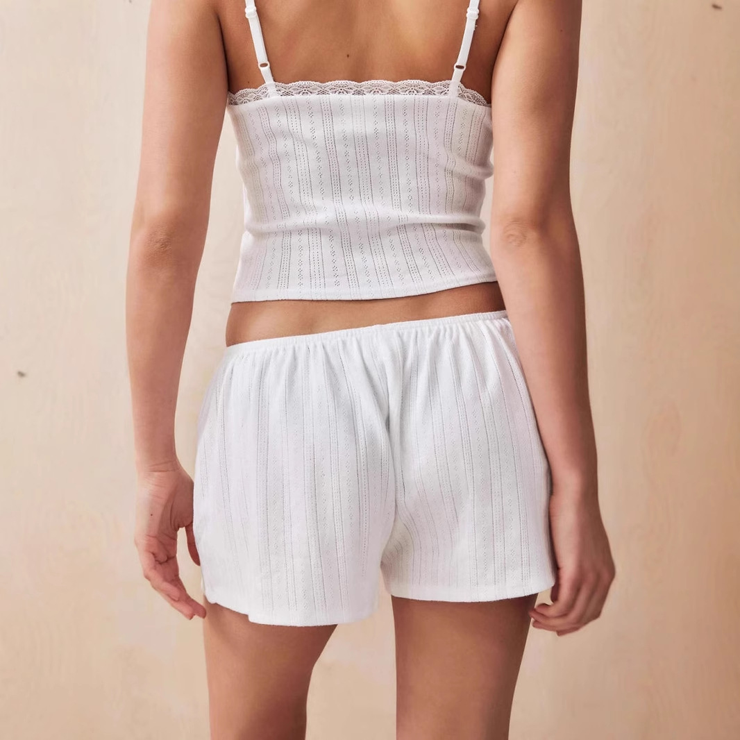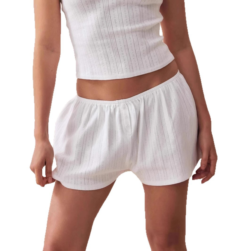 Pure cotton jacquard long-sleeved top, trousers and pajamas two-piece set spring knitted hollow pajamas
