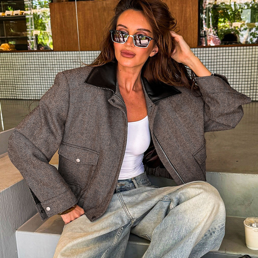 Clothes length: Ordinary (50c Sleeve length: long sleeves Sleeve type: regular Collar type: Lapel Popular elements: pocket year season: Fall 2025 color: Brown, weight: 500G, composition: 100% polyester fiber, support size: S,,L style type: Temperament commuting placket: Zipper style type: Elegant temperament Whether: Yes Main downstream sales areas 1: Main downstream sales areas 2: