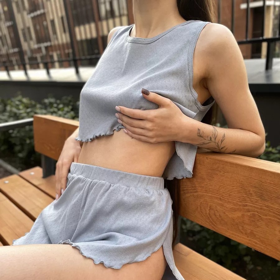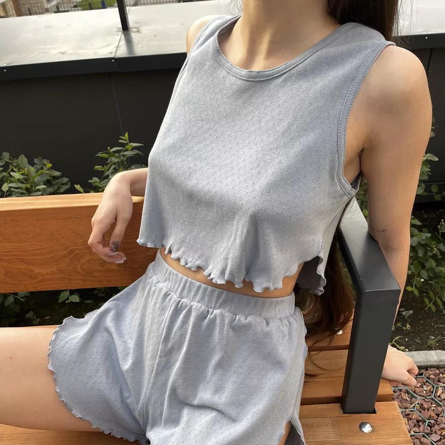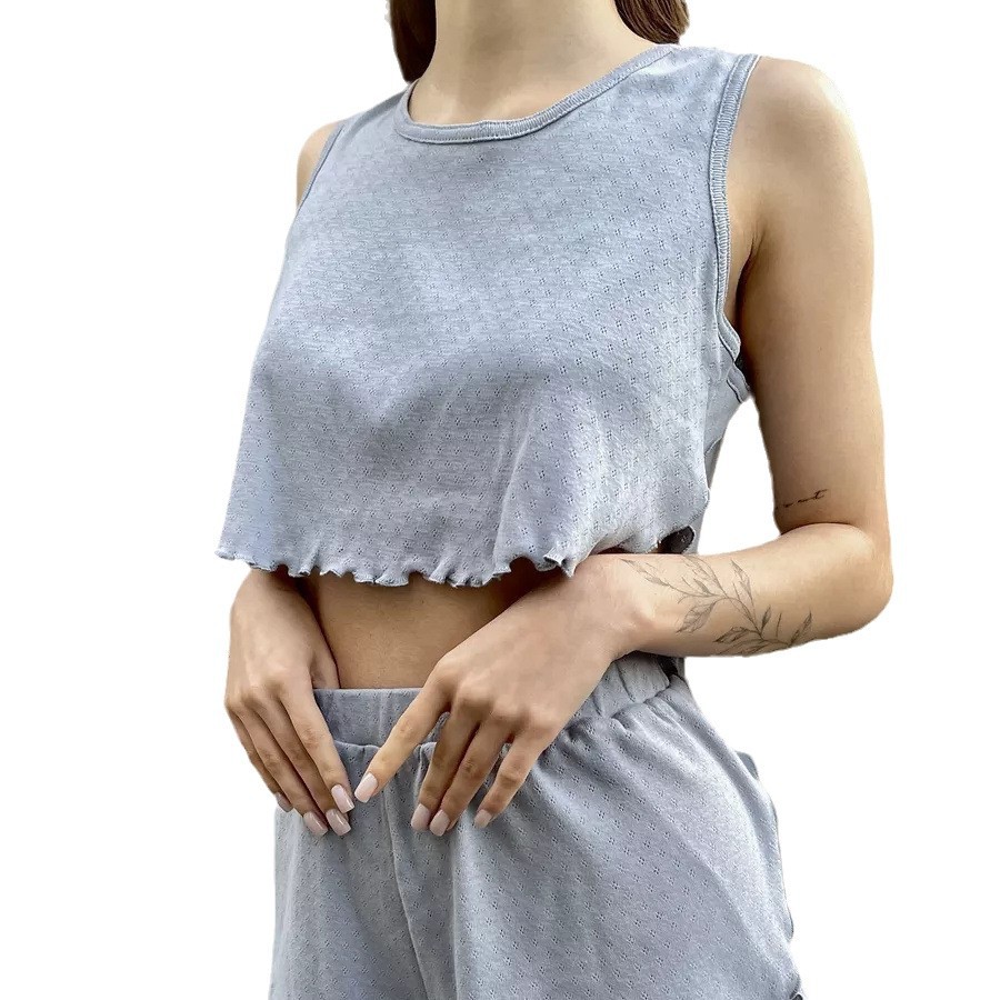 Be the first to review “Round neck sleeveless vest shorts set sexy solid color hollow thin jacquard pajamas set two-piece set for women”