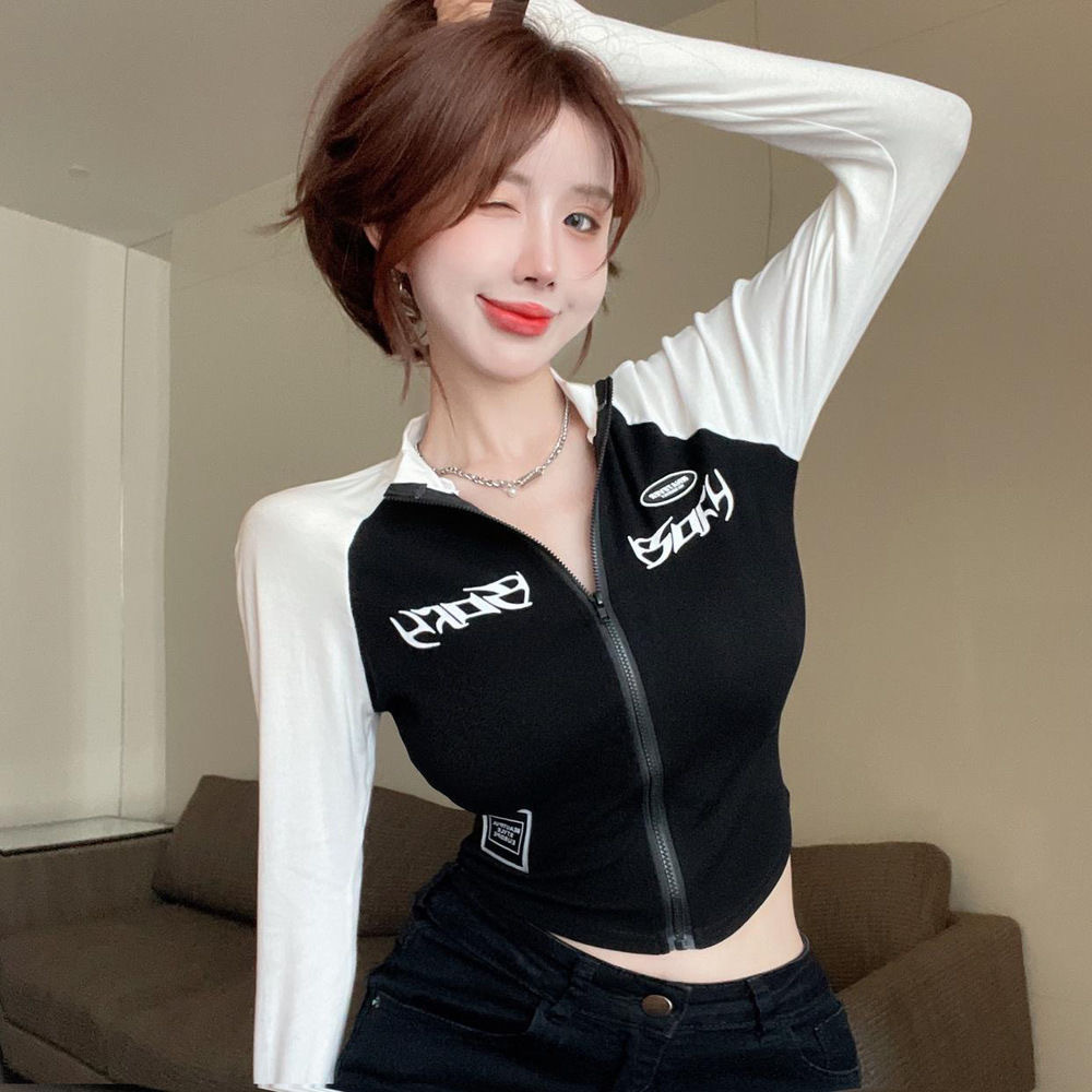 YF8098 black and white color matching, YF8098 black and gray color matching, The fabric is soft and stretchy, the fit is good, and the sleeve length is extended, Black and white, gray accepted to order