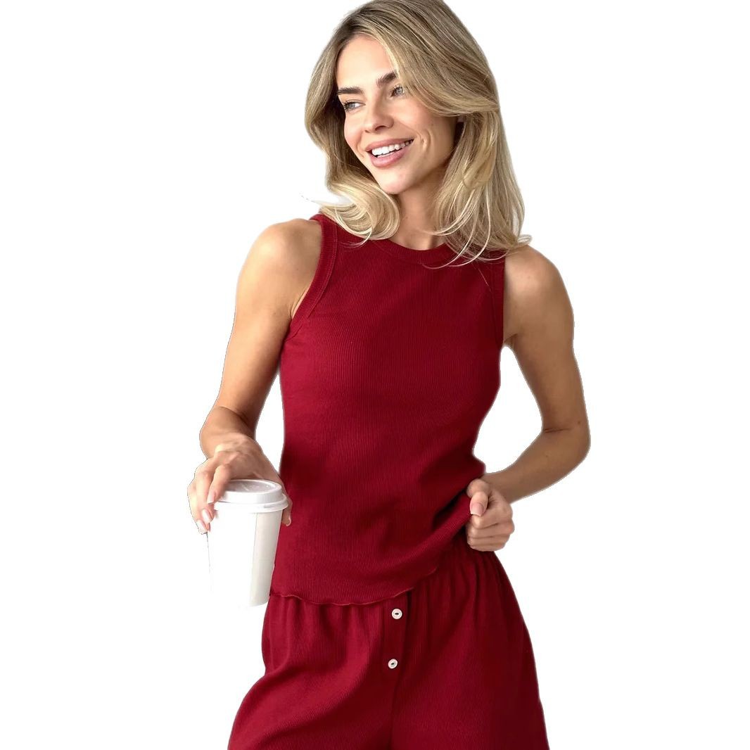 Be the first to review “Women’s elegant round neck sleeveless top shorts casual two-piece home wear set”