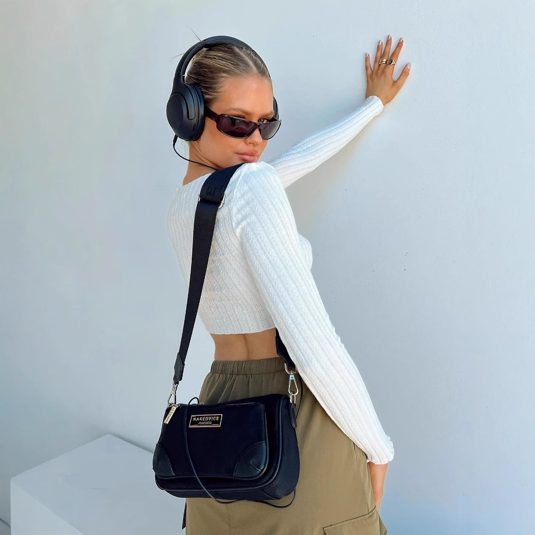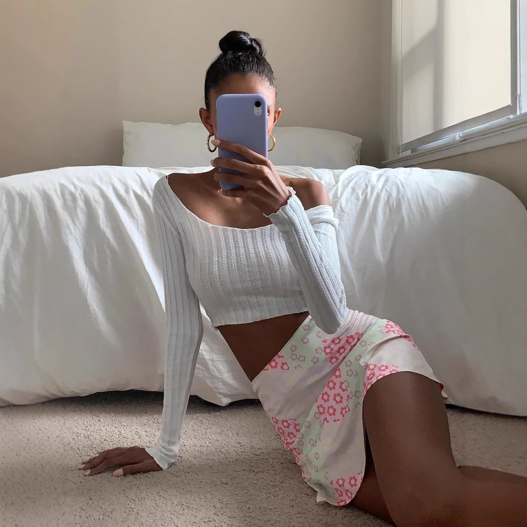 Slim-fitting fungus-edged long-sleeved top for women in spring, sexy midriff-baring square-neck fashionable shirt for women