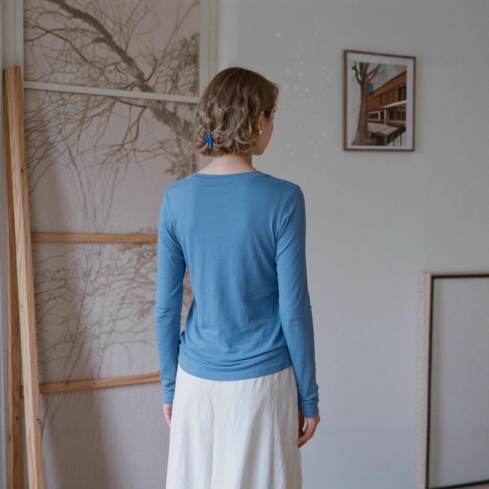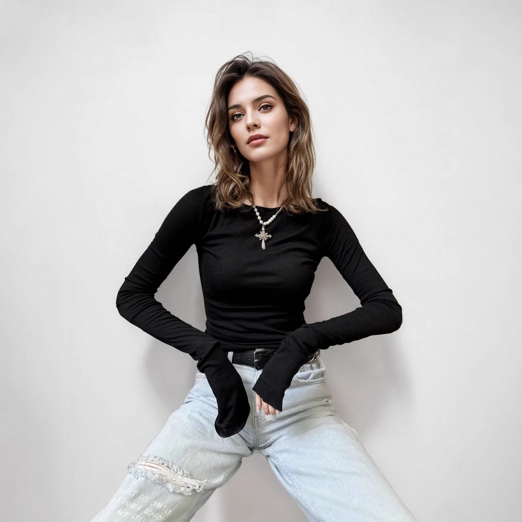 Thin long-sleeved shirt top, slim, versatile, comfortable and skin-friendly, round neck, solid color, slim fit, long-sleeved top