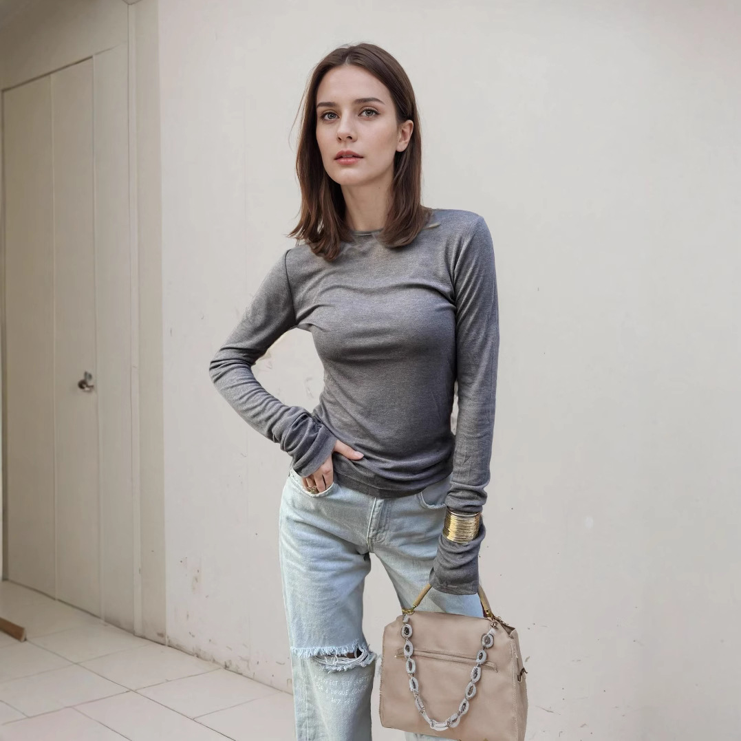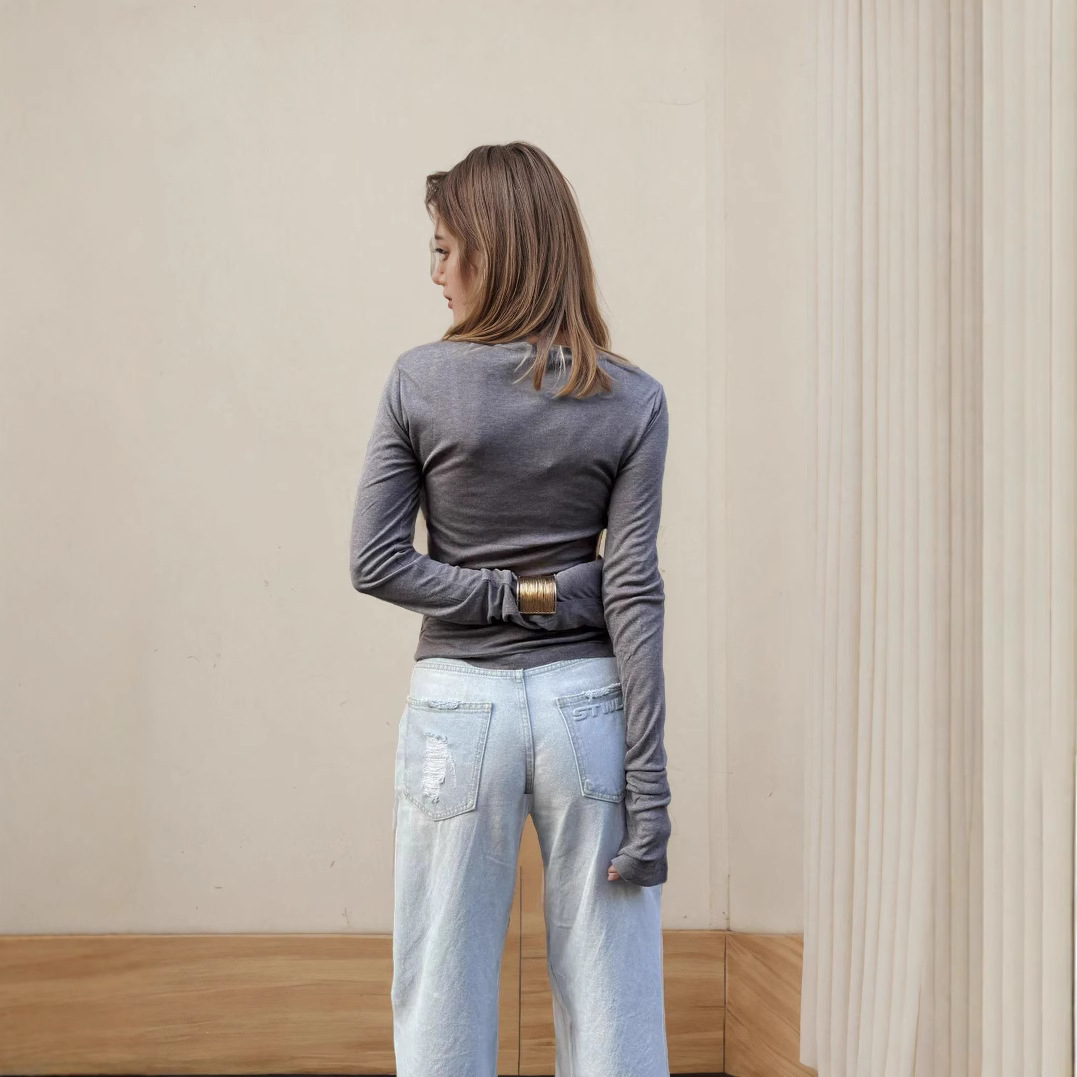 Thin round neck bottoming shirt, fashionable stacked sleeves, slim and versatile long-sleeved shirt tops for casual women
