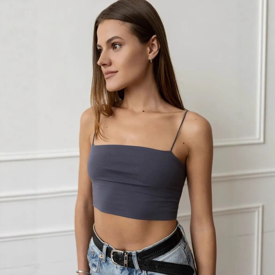 Versatile and sexy double-layer flat mouth spaghetti straps midriff-baring vest for women slim solid color short bottoming small suspenders