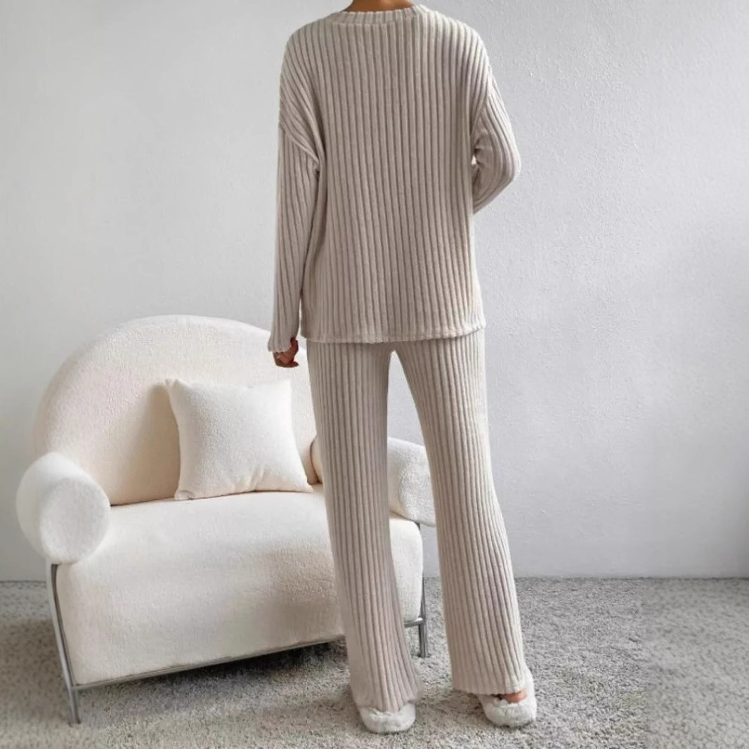 Two pieces of fashionable round neck slim long-sleeved tops and trousers that are comfortable and skin-friendly