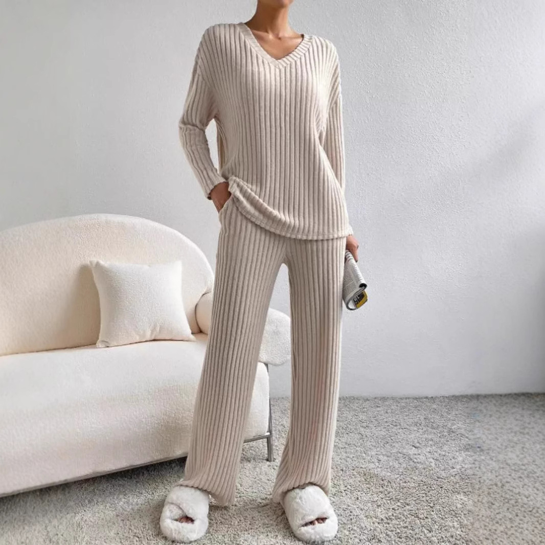 Two-piece set of women’s autumn fashionable casual pants and temperament collar pit strip knitted suit