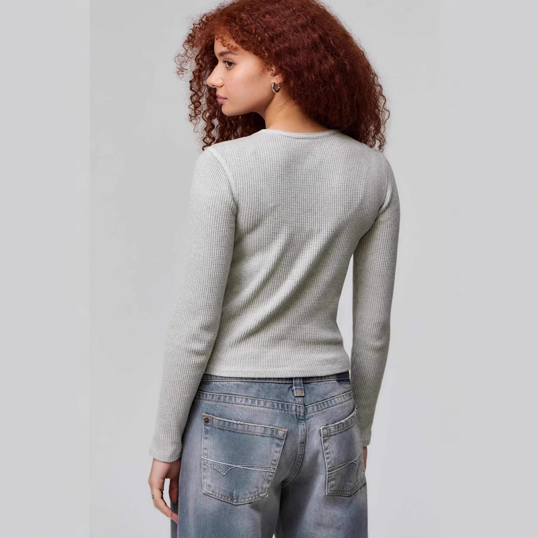 Western-style and discreet machine-top clothing design, slim-fitting, irregular side slits, long-sleeved bottoming shirt with earrings