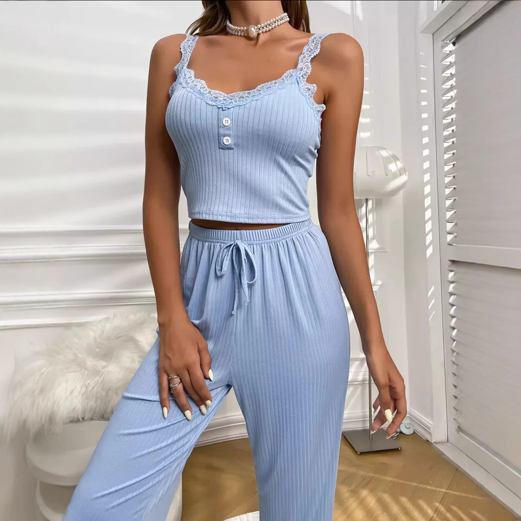 Lace Vest Pajama Suit Hot Girls Sexy Pants Casual Suspender Pajamas Home Clothes Women