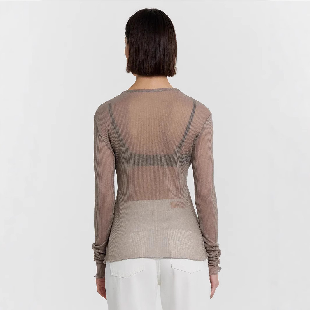 Long-sleeved bottoming shirt, round neck, pure desire, sexy, slightly see-through, sexy slimming top, stacked sleeves for women